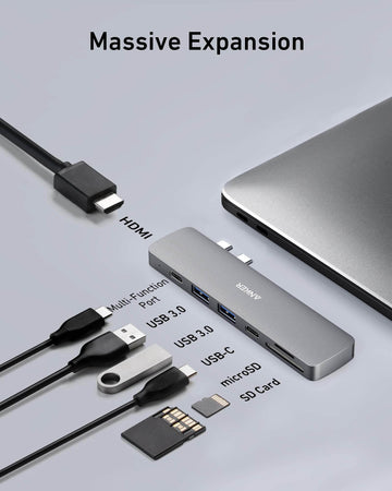 9-in-1 Connectivity: Equipped with two 5 Gbps USB 3.0 data ports, two 480 Mbps USB-A ports, a 4K HDMI port, a 100W PD-IN port, an Ethernet port, and SD/microSD card slots.
