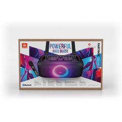 From beach parties to festivals, the JBL PartyBox On-The-Go lets you see, hear and feel the beat. Turn it up loud with 100 watts of powerful JBL Pro Sound, synched to a dazzling light show. Access your favorite tunes with Bluetooth, USB, AUX and TWS (True Wireless Stereo) connectivity, grab a friend and sing your hearts out with the JBL wireless mics, or use the instrument input to play along. With a bottle opener, padded shoulder strap, rechargeable battery and IPX4 splash-proof protection, the JBL PartyBox On-The-Go has everything you need to get the party started—and take it with you.