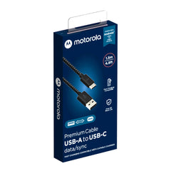 Motorola 1.5M Premium Braided USB-A To USB-C Cable - Black/Gray