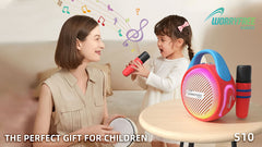 Let the little ones take center stage with the Worryfr1ee Gadget's WS10! Perfect for playdates or family gatherings, this 20W Mini Karaoke Wireless Speaker delivers crystal-clear sound and endless fun. With two microphones included and a 10-meter wireless range, the WS10 ensures every budding performer shines. Its 3600mAh battery provides 6-8+ hours of nonstop entertainment, making it a hit for every occasion.More from this collection