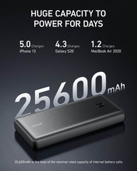 • Power Your Laptop Anywhere: The massive 25,600 mAh capacity combined with an ultra-powerful USB-C port enables you to charge your laptop on the go at full speed.