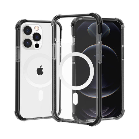 Premium Matching Color Frame Strong Magnetic Ring Circle Transparent Hq Thick Hybrid Case For iPhone 13/14 - Black