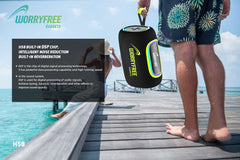 Take the Worryfree Gadget's WH58 wherever you go! Whether it's an intimate indoor gathering or a road trip adventure, the WH58 delivers clear, rich sound and stunning RGB lighting to enhance the mood. With a wireless standard of 5.3 and a 10-meter transmission range, this 65W speaker ensures a high-quality listening experience.With a powerful 8000mAh battery, the WH58 offers 8-10+ hours of non-stop playtime. Its support for TWS connection allows you to pair it with other speakers for a fuller sound, and the EQ m o d e lets you customize the audio to suit your style.