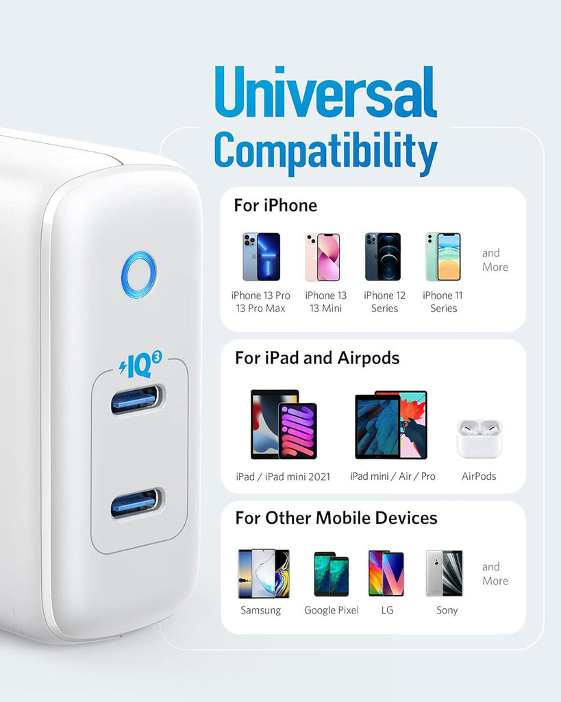 Two-Port High-Speed Charging: Experience high-speed charging with dual USB-C ports and advanced PowerIQ 3.0 technology, delivering an impressive 22.5W output.